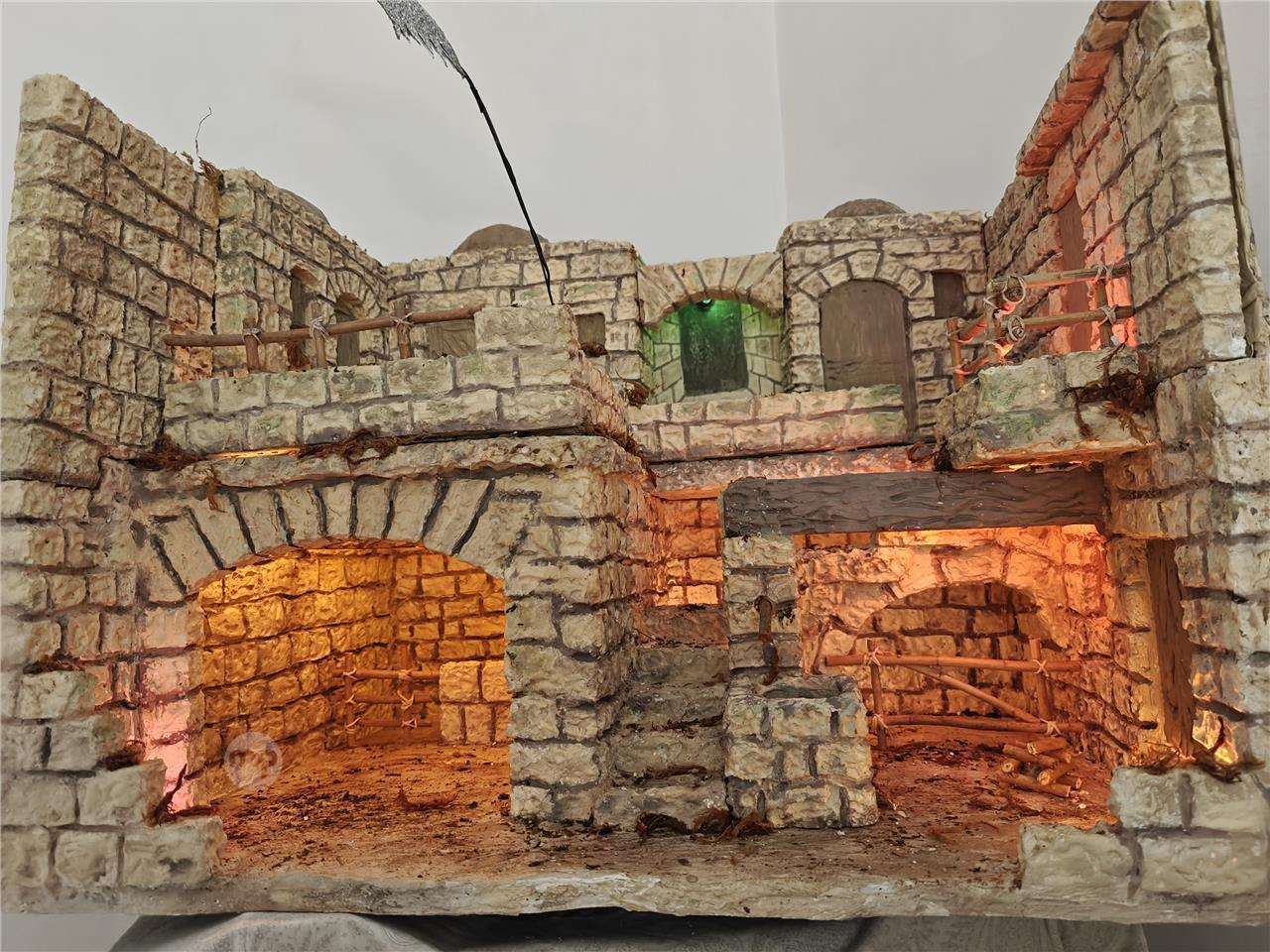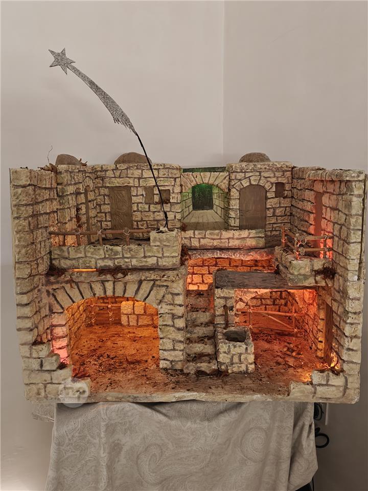 Presepju artistiku ghal Pasturi tal-qies 15,5 cm. qies tal presepju 75cm wiesgha x 58cm fond x 56cm gholi. Komplut bid-dawl u transformer 12v. MINGHAJR PASTURI. Jingabar miz Zejtun.