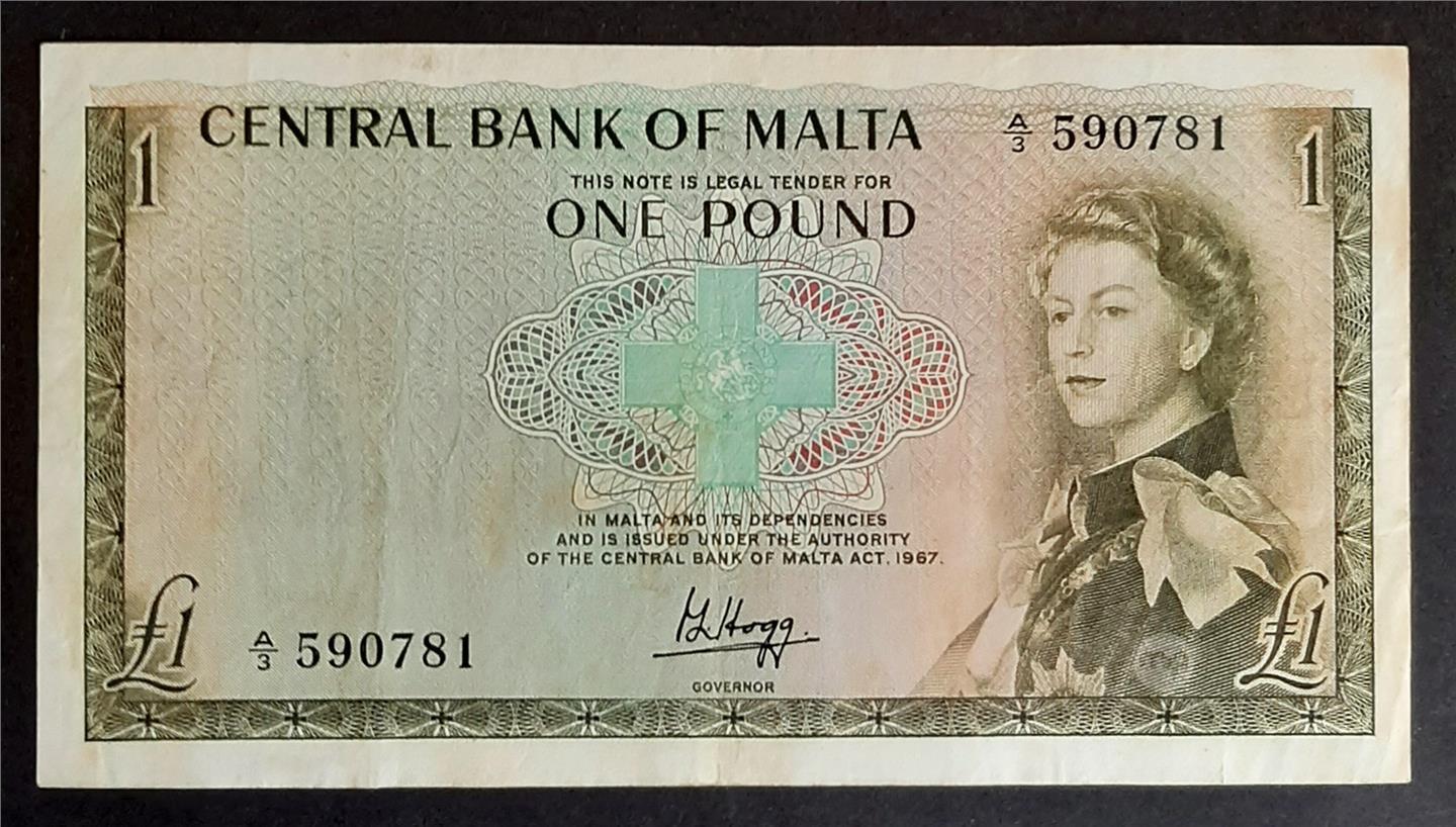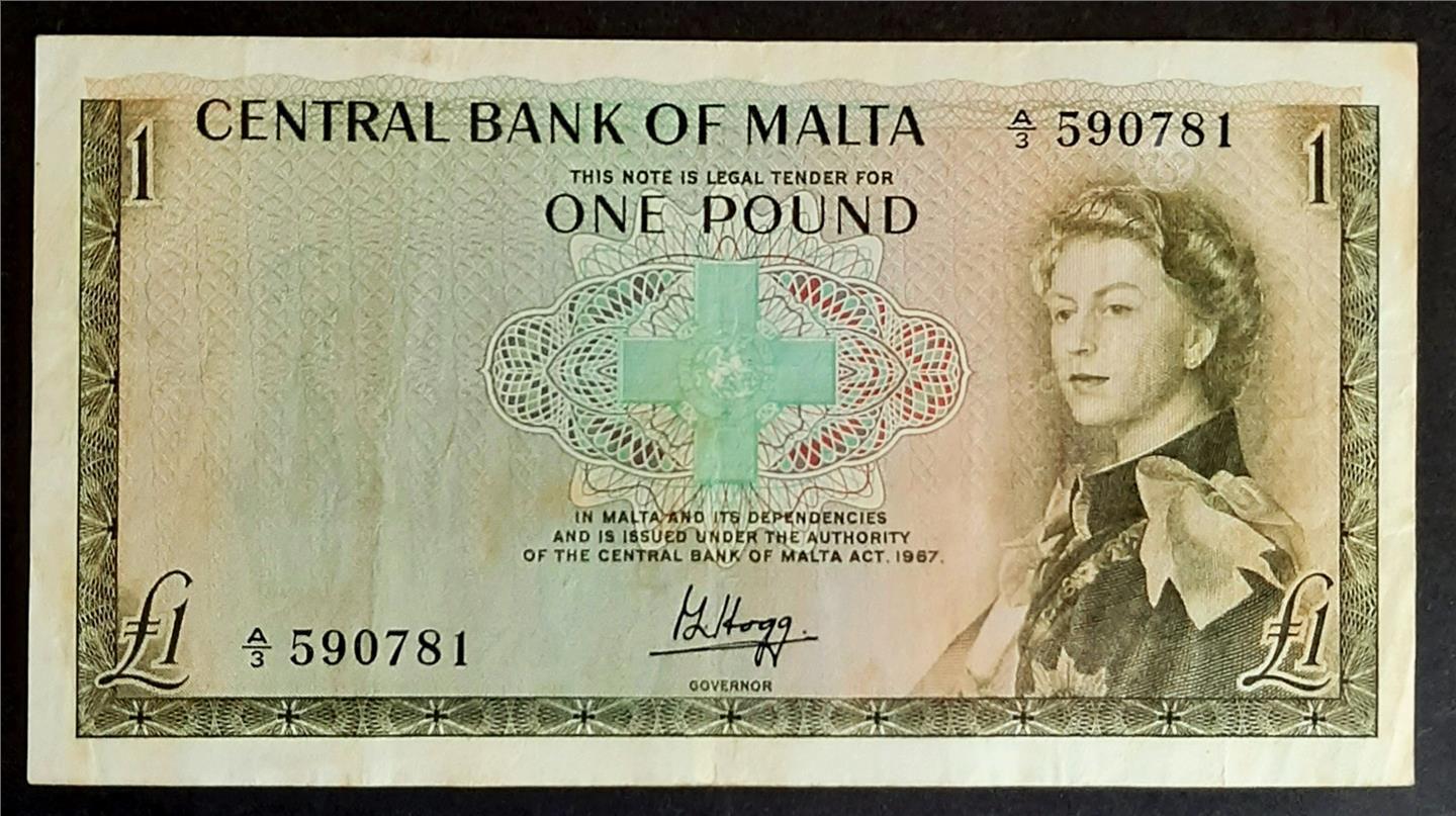 CENTRAL BANK OF MALTA - ELIZABETH II ONE POUND BANKNOTE signed HOGG