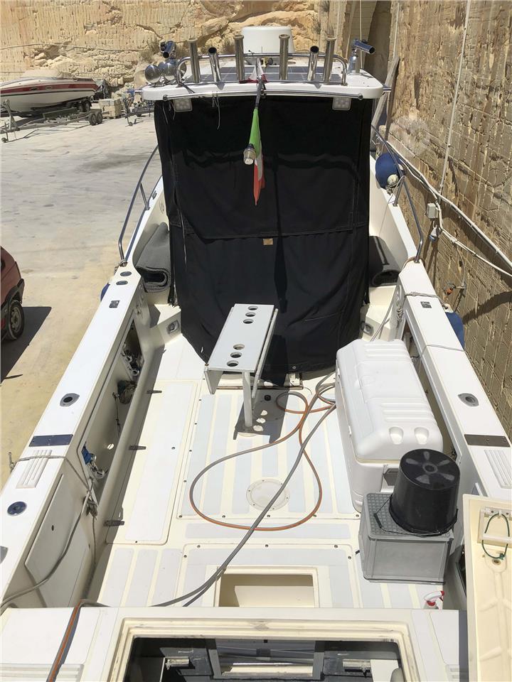 Walkaround Cabin American Fishing Boat, yard: MAKO MARINE Model: Mako B260 8.46 Meters 28.4 ”Only Hull. (With pulpit and bracket 10.5 Meters, 30.5 ") x 2.58 Mt (stern) -2.68 Mt (amidships). Year built1991. Name L'Atalante. Gross tonnage 5,5 Ton. Unsinkable! Closed cell foam on all bulkheads, hull, bow and stern Perfect and fully equipped! Open fishing / Gita-Fiberglass Epoxid. Central cockpit - Comfort Dinette. Hull angle (Deadrise) 23 degrees, very soft with very rough sea. Navigate without problems even with very large sea 7 (4Mt waves) !! Indestructible boat, very robust not a crack! Maximum speed 40 knots and cruise 26-32. Consumption 70-100 liters per hour. 1 double bed. Original Armstrong America bracket from the house. Motorization: 2 x Mercury Optimax 200HP Serviced every year with special liquid washing to remove salt from the cooling circuit. Foot oil, impeller, thermostats, alternator belts, petrol and oil filters, spark plugs ... always replaced when needed. Always mixed with original Mercury Optimax oil! Year purchased 2012. Hours 12x4800-5500 rpm. Hours 848 x 1000-1600 rpm. Total hours for 860 engine! Fuel: 780Lt. Water 70Lt aluminum tanks in the hull. Separate bathroom in the cabin with large glass, stainless steel sink, hose with shower and Jabsco ceramic toilet. New cooker stove x 2 with stainless steel sink. 50LT fiberglass external refrigerator with Vitrifrigo compressor behind the seat. Combi instrument (Eco, Radar, Gps, VHF) Lowrance america new 2025 - 12”. Radar, depth sounder, Vhf. Cushions like new. Full glass coverage for driver's cabin and Tip-Top cabin in Sunbrela fabric. Double trumpets. Solar panels x 2 Tot: 180 Watt 11 Amp / h with electronic regulator. SeaStar Pro hydraulic steering system new tubes. Bruce anchor 15 Kg. 8mm chain 80 mt. “Powerful” electric winch completely overhauled and regenerated last year "Lofrans". Price € 39000. Boat without Engines €29000