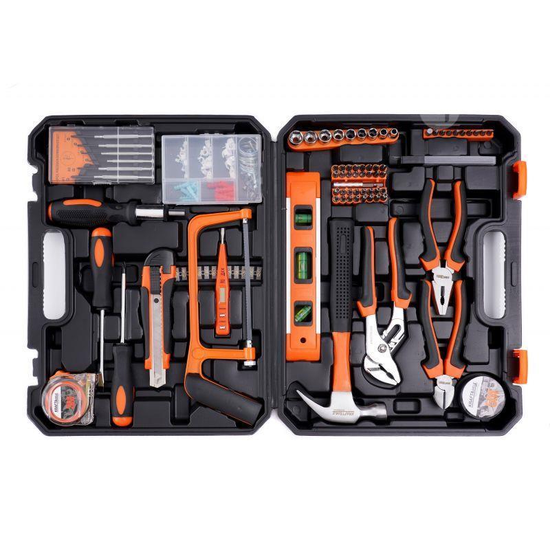 The entire set consists of 100 different elements, which will ensure the right selection of the tool for your needs. The tools are made of hardened chrome-vanadium steel (CrV) intended for workshop tools. Chromium guarantees the steel's resistance to corrosion, oxidation, abrasion and high resistance to high temperatures. The addition of vanadium inhibits grain growth during processing , while increasing the ductility of both the hardened and tempered form.