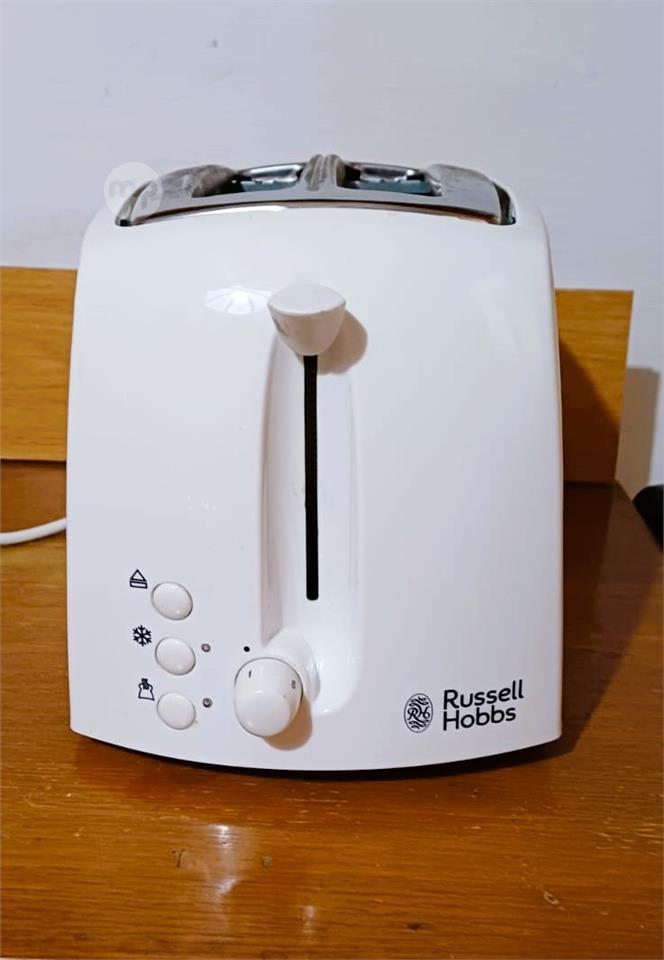 White, Russel Hobbs toaster with 3 pin plug. In working condition.