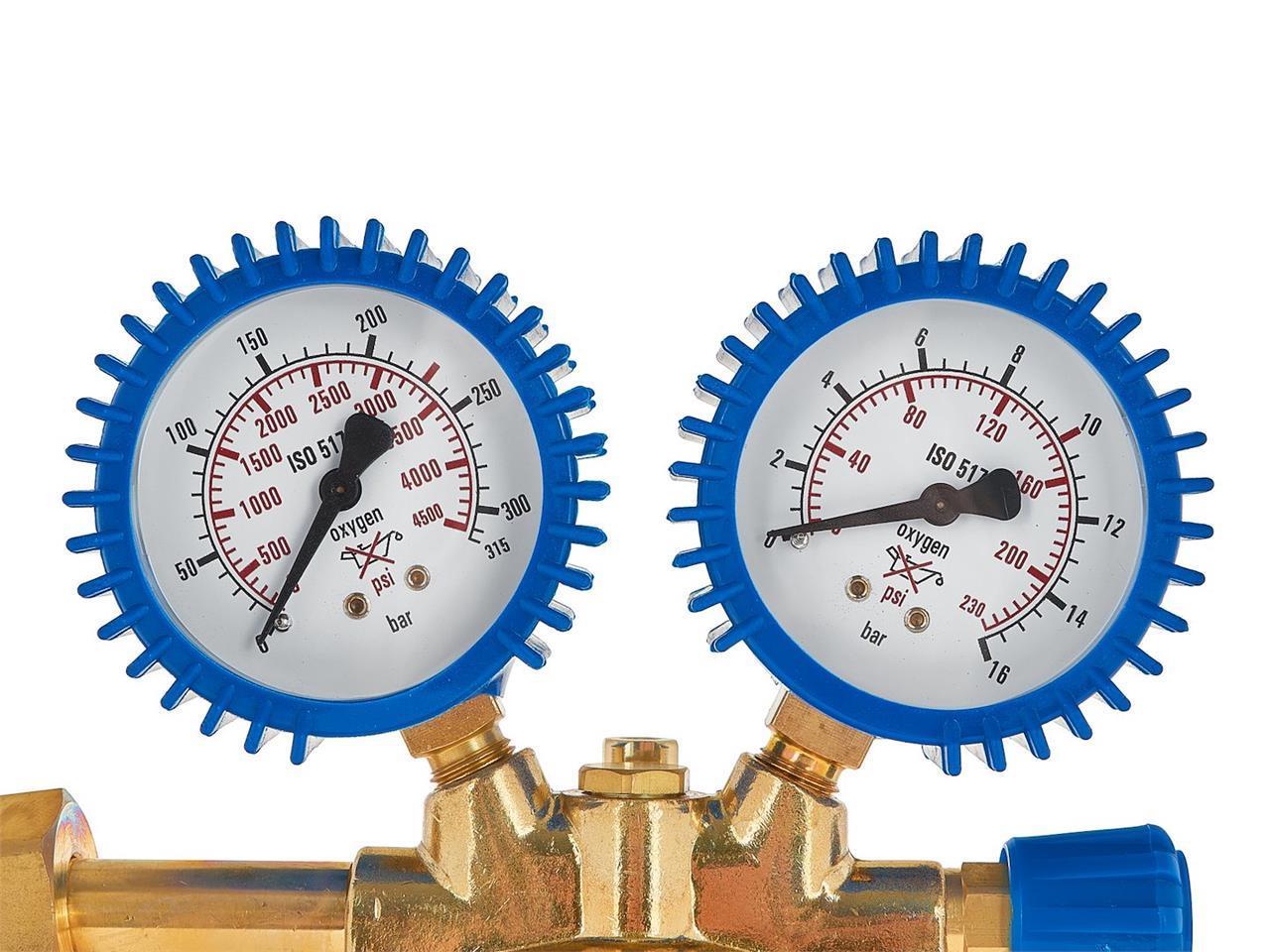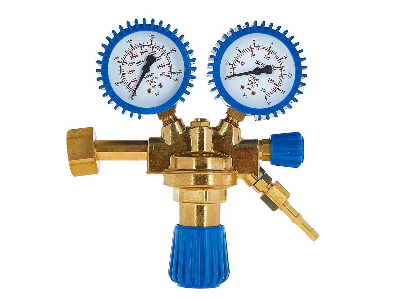 Professional Oxygen Pressure Regulator – a reliable and safe device designed to reduce and stabilize the pressure of gas flowing from oxygen cylinders. Thanks to precise pressure gauges and a solid construction made of high-quality brass, it is ideal for welding workshops, industrial plants, technical services, and laboratory applications.