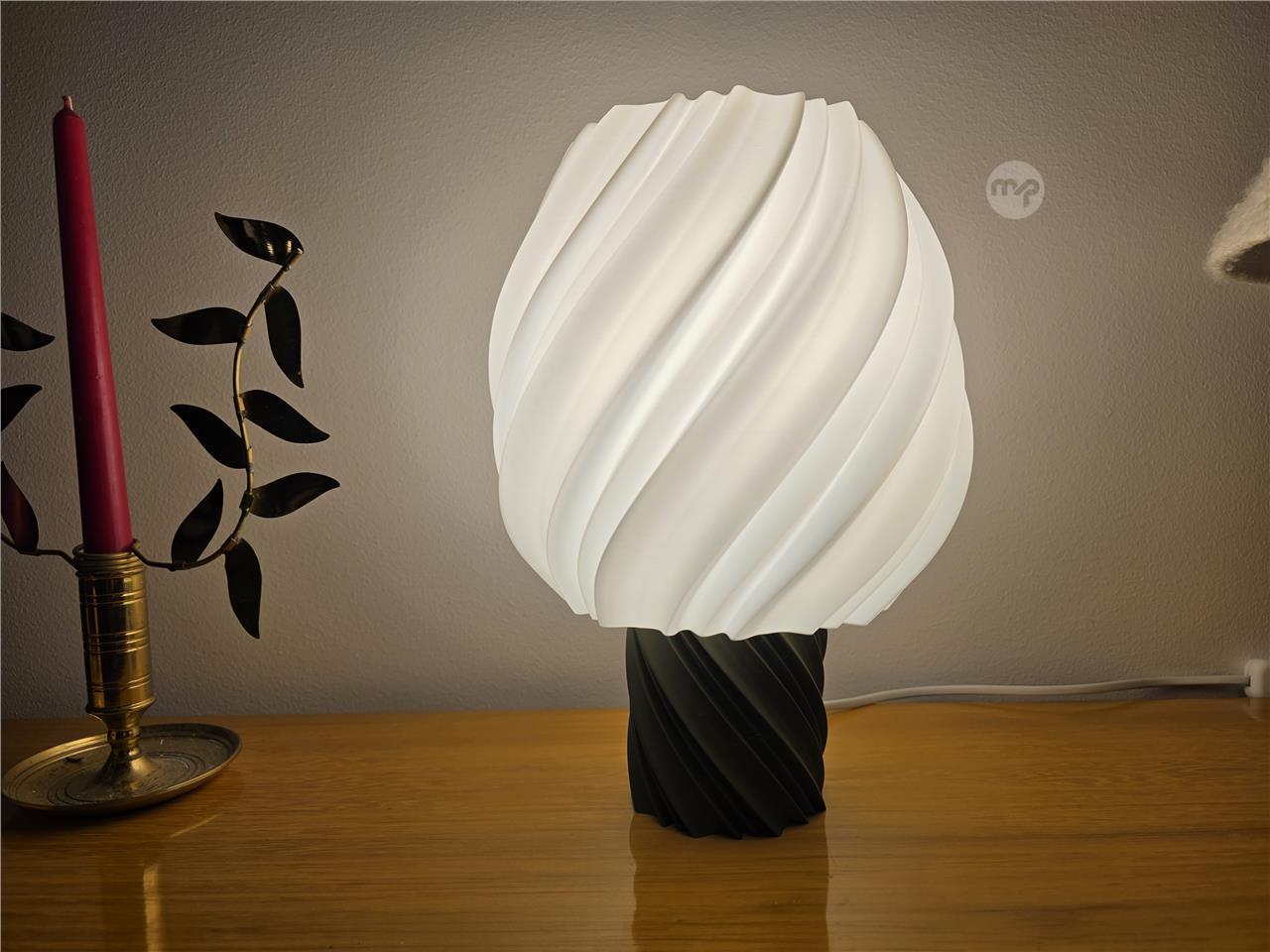 A flowing, sculptural lamp inspired by bedsheets moving gently in the wind. The twisting shade and matching base create a soft, elegant silhouette that fits perfectly into any modern or minimalist home.