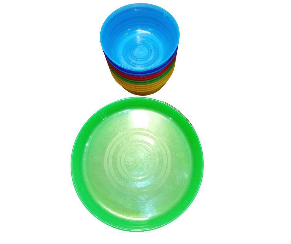 Set of 12 Colorful Kids Plastic Plates + 12 Matching Bowls