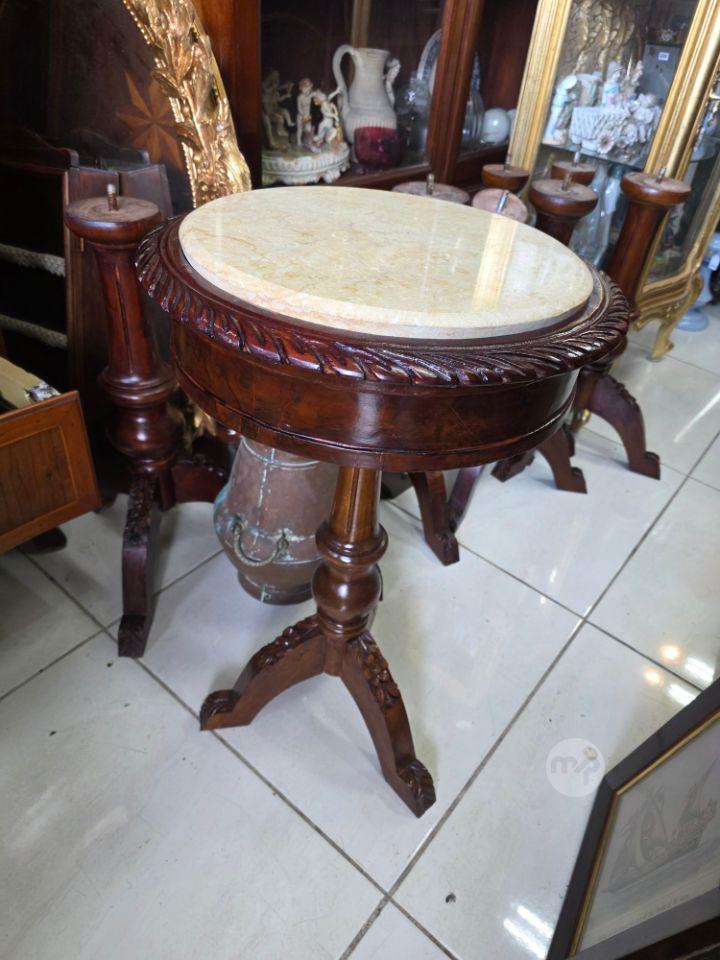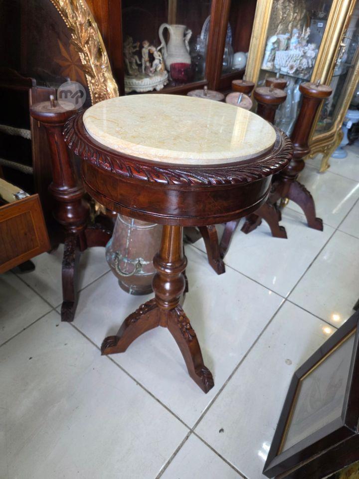 Pair Elegant Round Tables with marble tops. In excellent condition. 100euros Eac