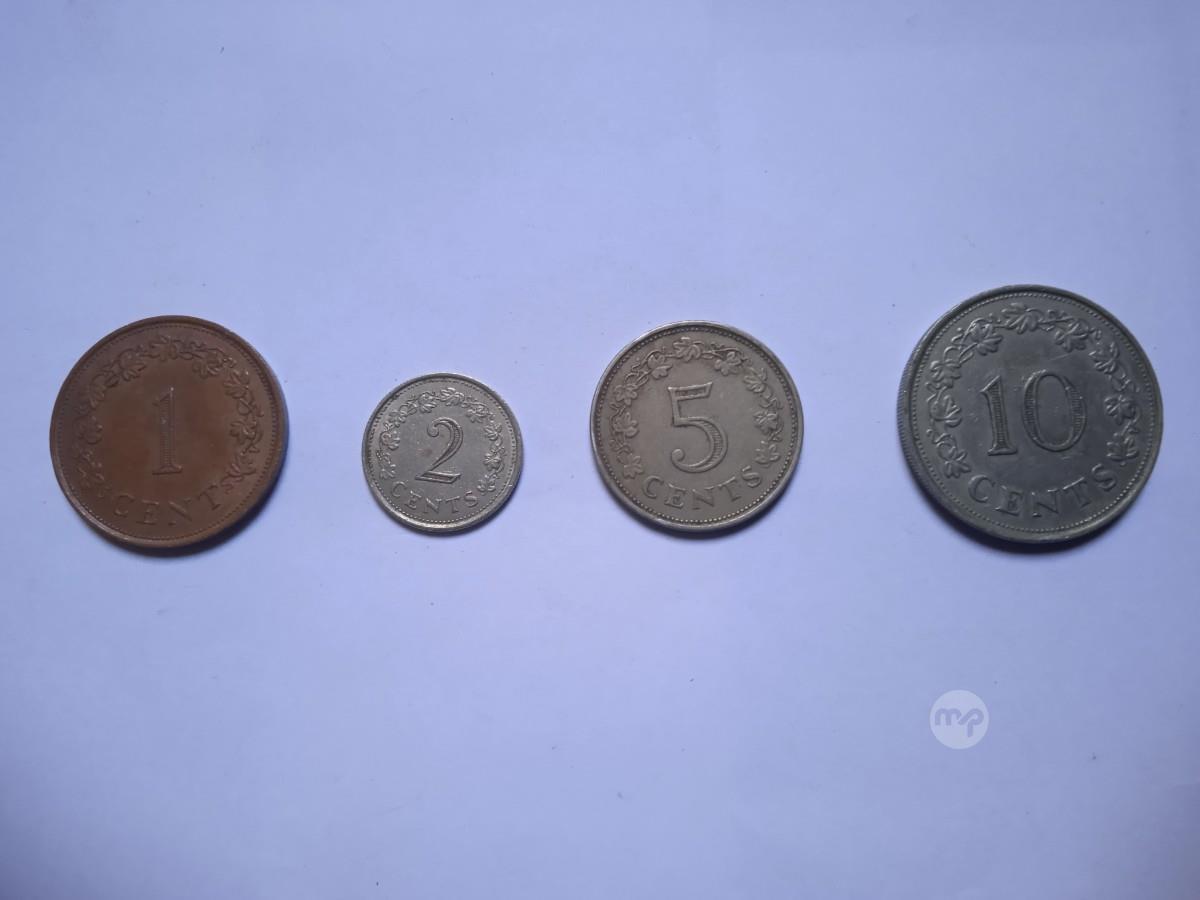 4 Maltese 1972 coins of 1,2.5 and 10 cents