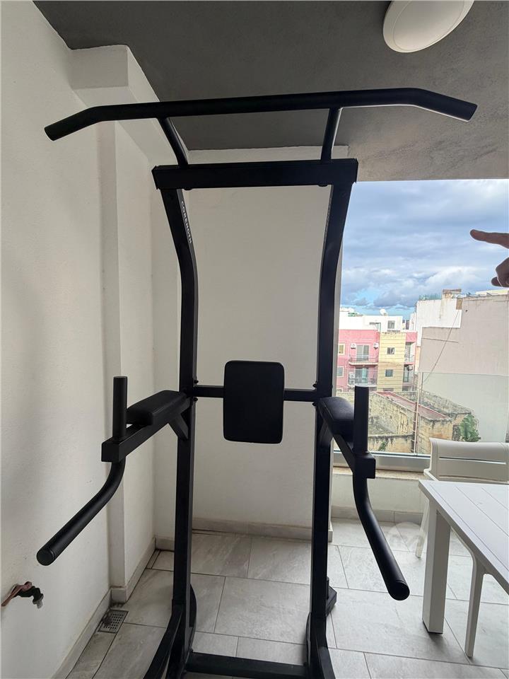 Great for pull-ups, chin-ups, dips, leg raises and core training. Solid steel frame, stable and comfortable arm pads and back support (see photos).