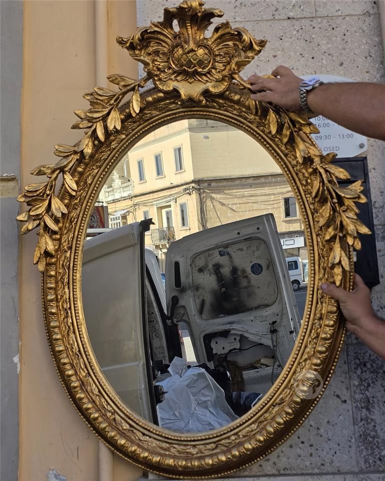 Two Large Gilded frame oval Mirrors. Still in very good condition . Measures 115 x 85 cms Price of 220 euros each Can sell separate. 99456526