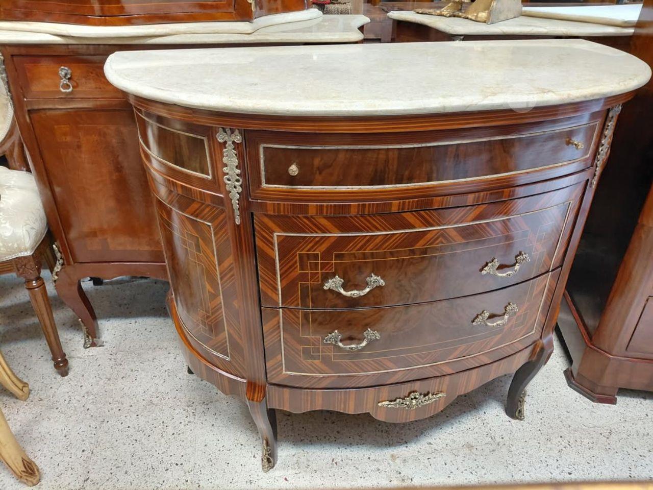 A D Shaped French style Chest of 3 drawers Marquetry inlay Bronze mounts