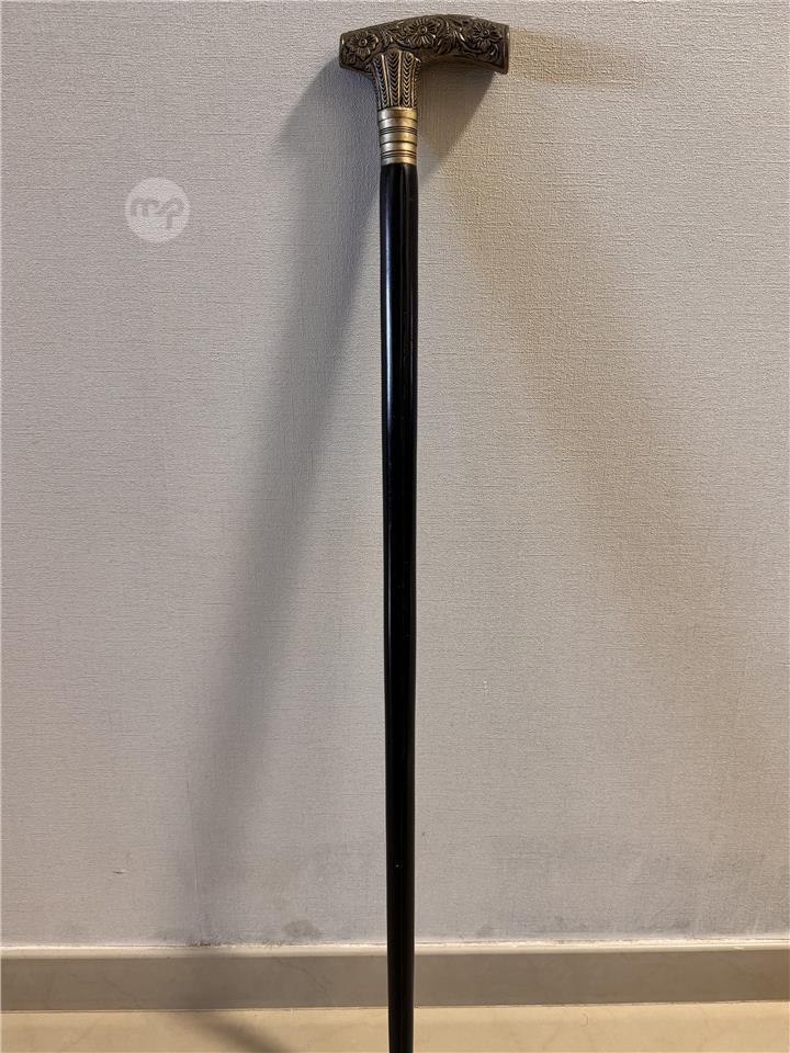 Vintage Black Walking Stick with Ornate Decorative Handle