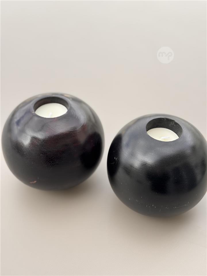 Pair of Modern Black Wooden Tea Light Holders – Spherical Design