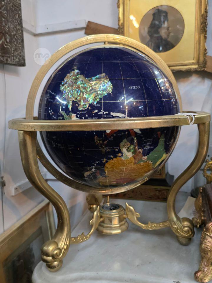 A LARGE Real Lapis Gemstone globe With a bottom Compass ,integrated into the ce