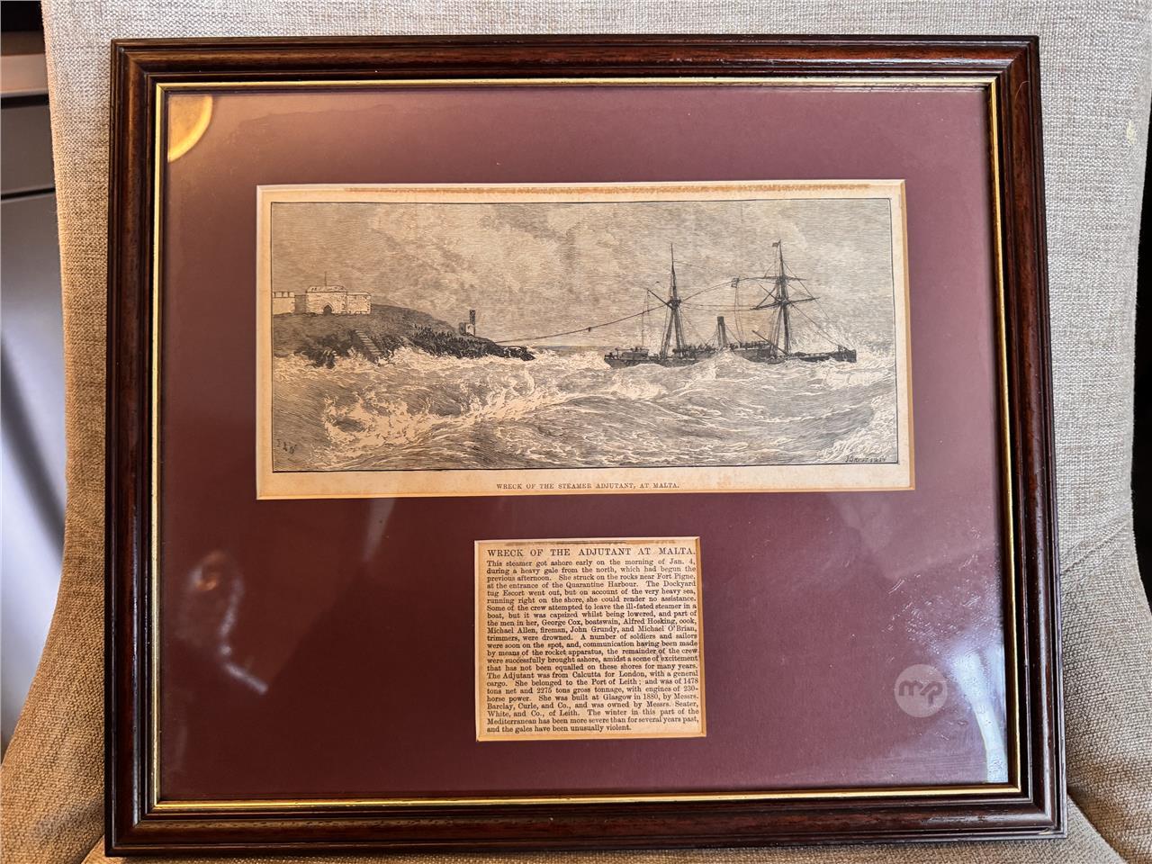 Frame commemorating the wreck of the Adjutant Steamer in Malta