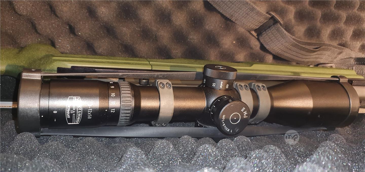 The Schmidt & Bender 3-12x50 offers superb optical clarity and precise, repeatable adjustments. It is professionally mounted and perfectly matched to the rifle. Included is the aluminium case with foam inlay, sling and bipod, making this a turnkey package for the range or precision field use.