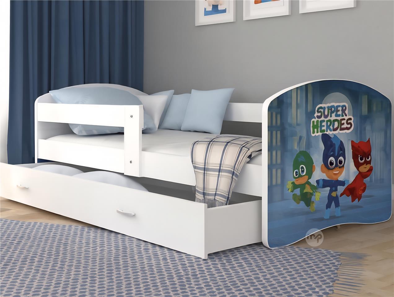 Children's Bed 160x80 cm - Super Heroes Design, white - Brand New, Mattress Included, Easy Assembly