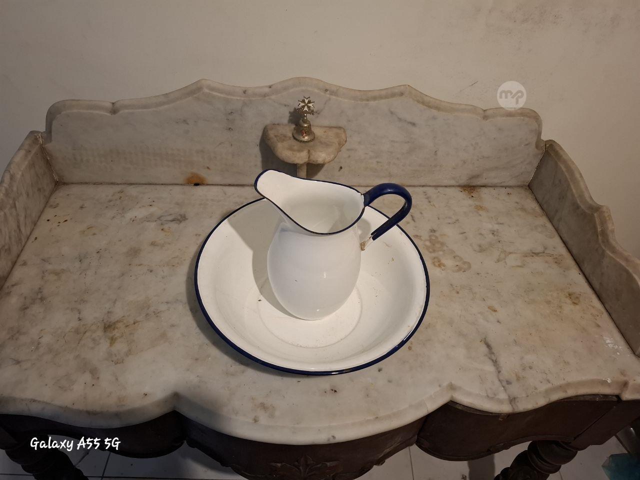 It's an antique, was given to me by my great grand fathers uncle, and it was his mother's so it has a history. It's well kept has two drawers and comes with the acessories.