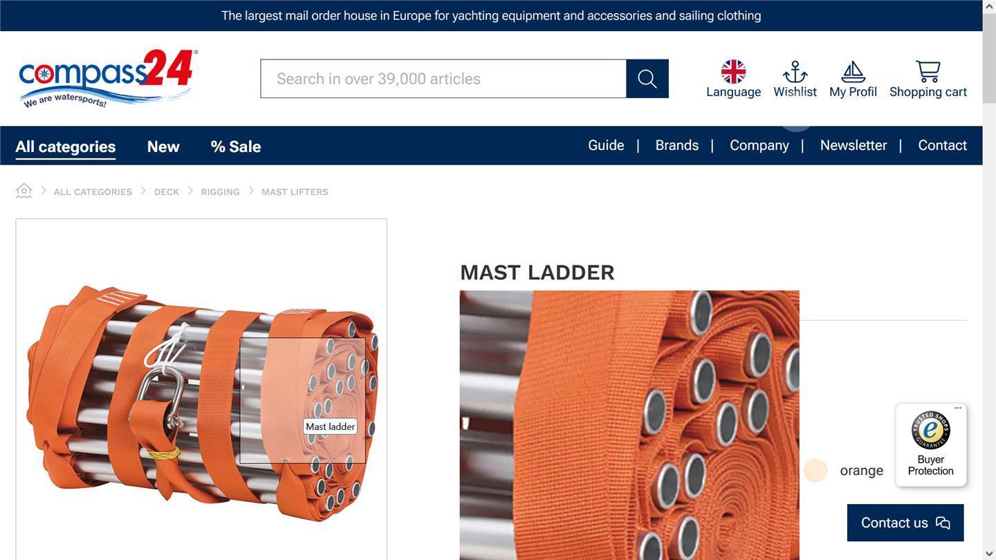 Yacht Mast Ladder made from canvas arround alluminium steps suitable for mast of up to 15m identical to picture. Steps are as new used once and come with stowage bag. They are listed with Force 4 Chandlers at Eu490