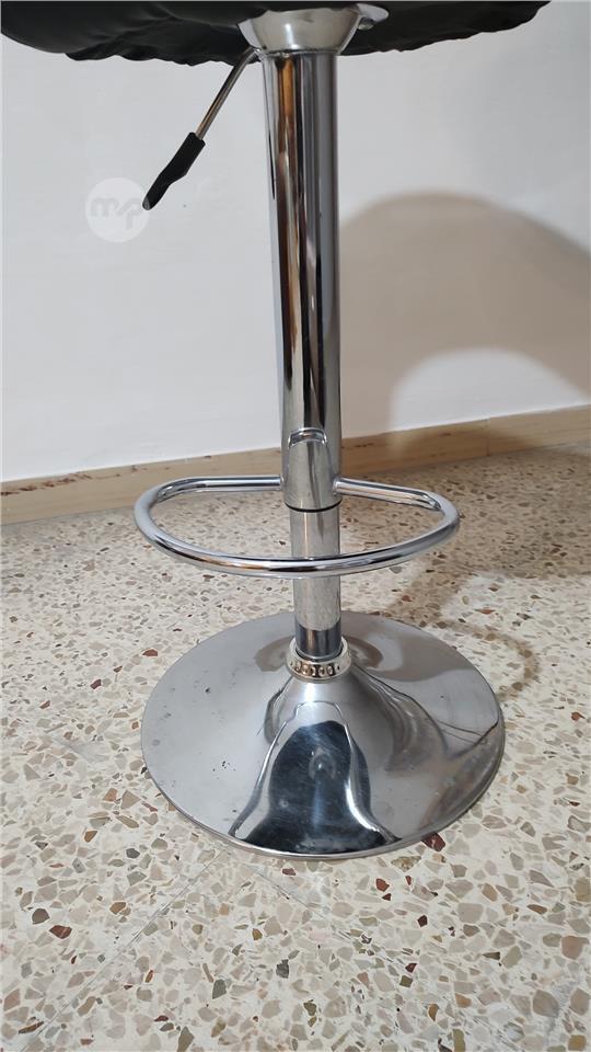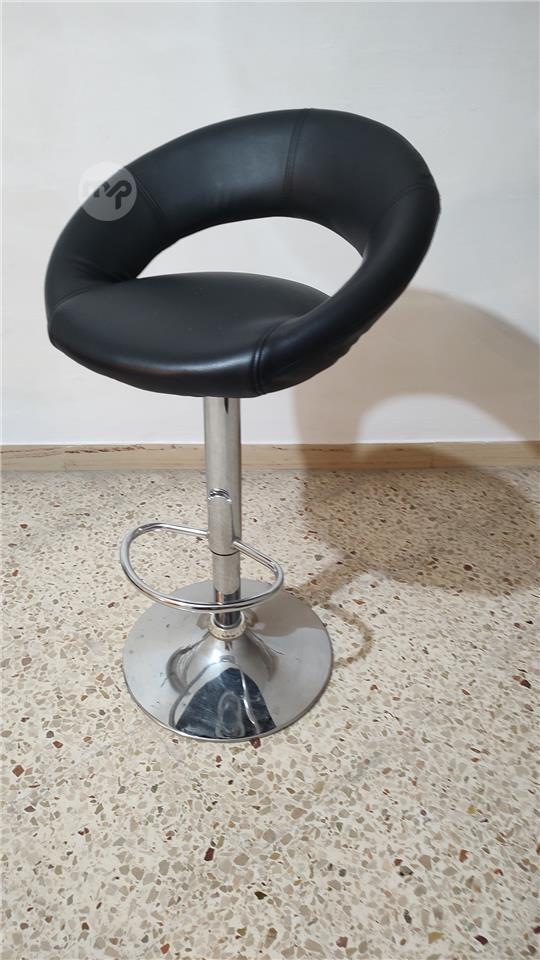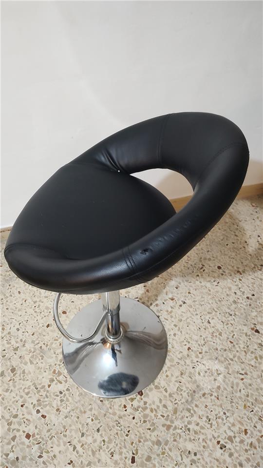 Chrome pump bar stool, minor scratch at top else excellent fully functioning pump action in black leatherette material.