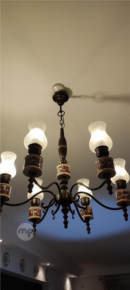 Elegant hanging chandelier with 6 lights and beautiful wrought-iron detailing. Classic design, perfect for adding charm and warmth to any room.