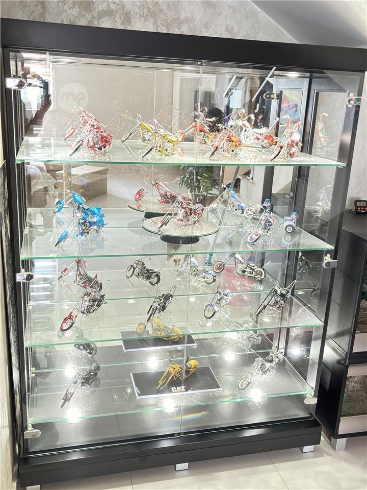 Black Showcase with glass shelves and with back mirror models and delivery not included