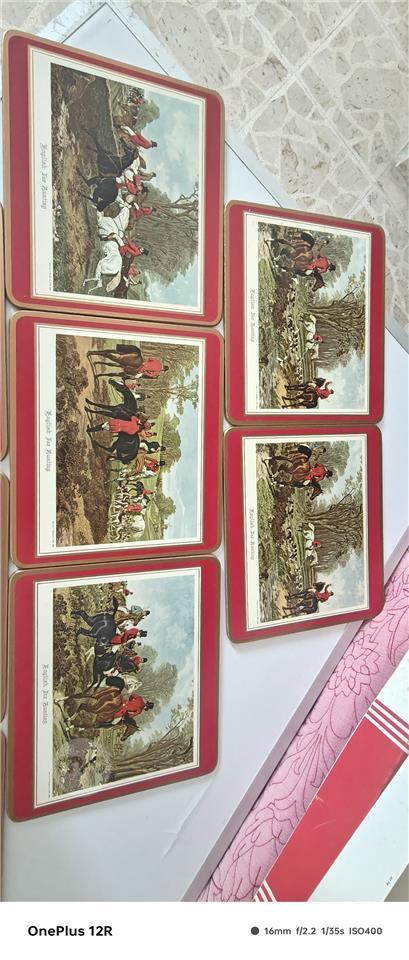 A set of 6+2 Traditional English Fox Hunting Place Mats by Pimpernel.