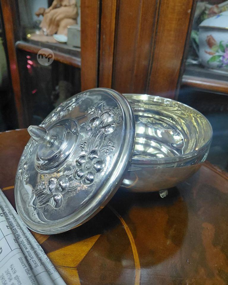 In perfect condition 925 Silver Bowl with lid Decorated with embossed flowers an