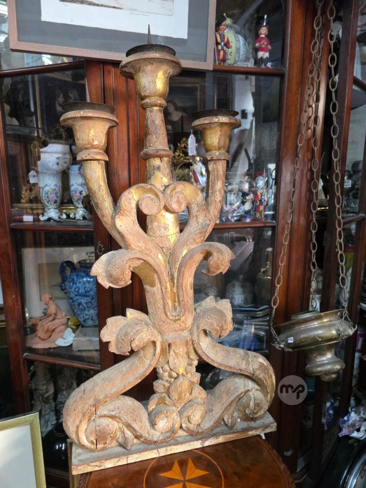 A LARGE,Early 19 th Century carved wood Gilded Triple Candle Stand.This candlest