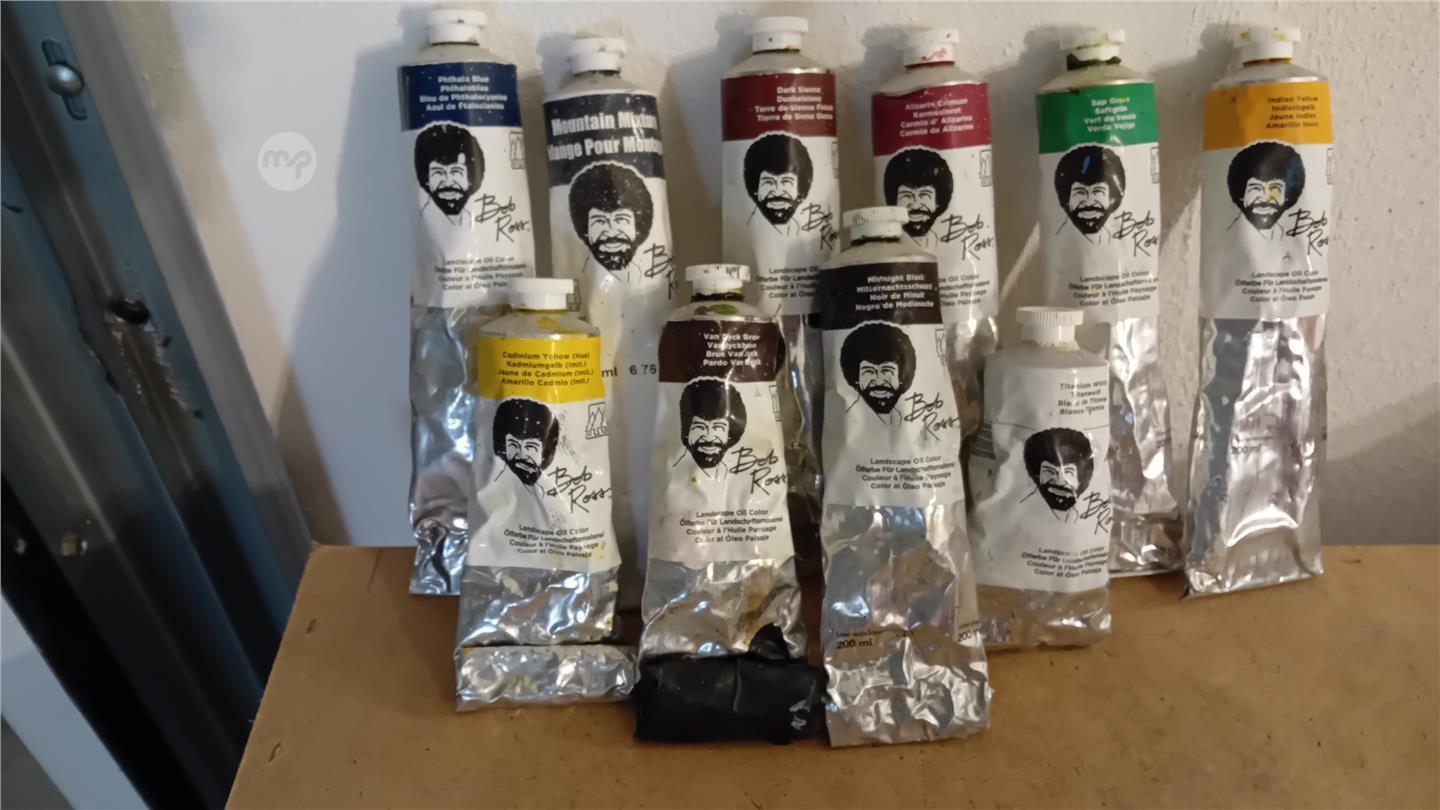 Bob Ross oil paints, 10 x 200ml tubes, most at least 80 percent full. See photo for colours.