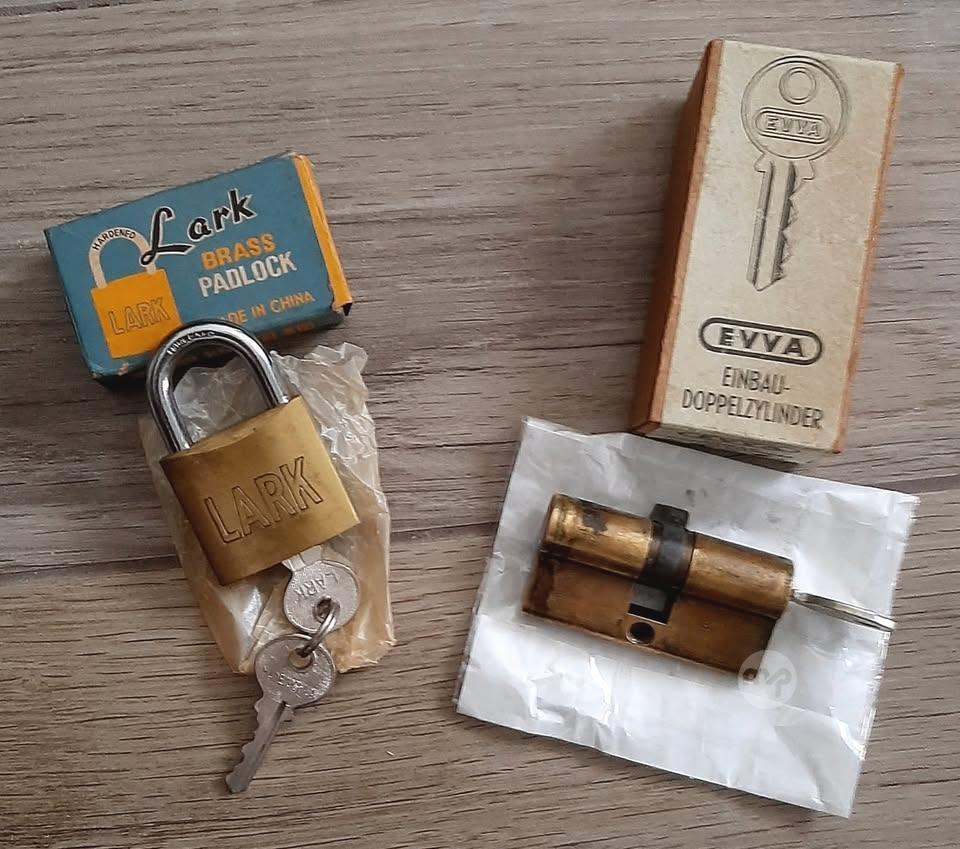VINTAGE EVVA DOUBLE CYLINDER LOCK and LARK BRASS PADLOCK