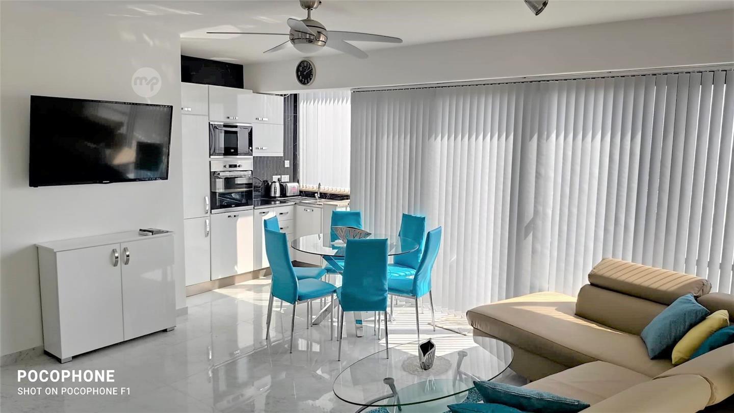 An extended living area may be used, either as the spare bedroom with its own air-conditioning, wardrobe, two single sofa beds and a large window enjoying panoramic views, or (if not required) as a compliment to the beautiful open plan. Property is fully air-conditioned and includes double glazed doors and windows and insect screens all throughout.