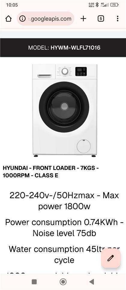 Hyundai Front Loader 7kg 1000RPM code ( Eng)