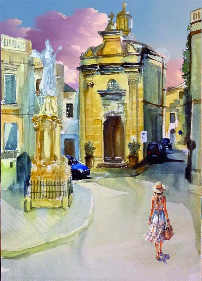 SANTA MARIJA CHAPEL BALZAN MALTA ---- ORIGINAL HAND PAINTING OIL ON CANVAS 70X50