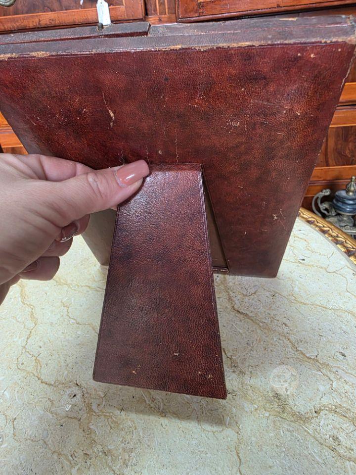 An antique framed painting of the Sacred Heart of Jesus in a triptych-style case.