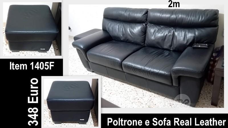 ( 1405F ) POLTRONE E SOFA REAL LEATHER SOFA & 2 PUFFS