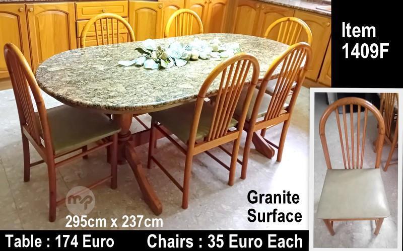 ( 1409F ) SOLID OAK TABLE WITH GRANITE SURFACE & CHAIRS
