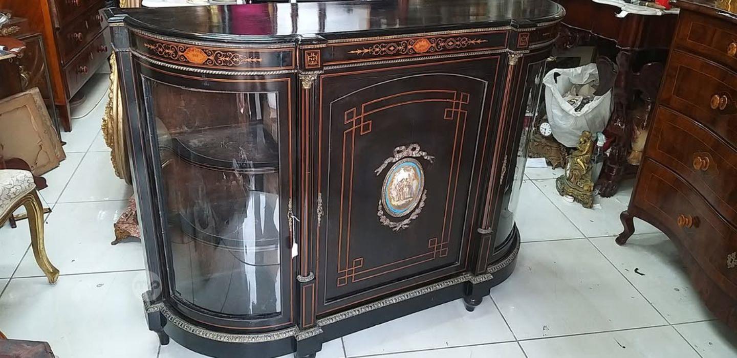A D shaped Kradenza Genuine Antique French Cabinet Bronze mounts Sevre porc