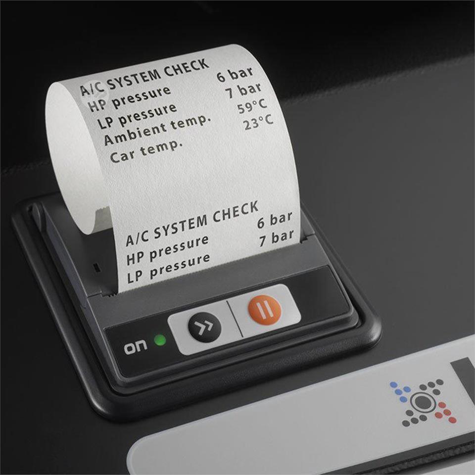 Automatic refrigerant recovery and recycling and oil drainage functions. Quantities of oil and UV tracer are controlled by an automatic valve system.