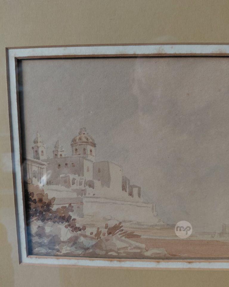 A Typical water colour painting by Maltese Artist Joseph Galea Showing Mdina M