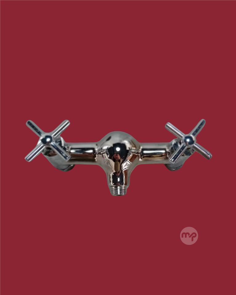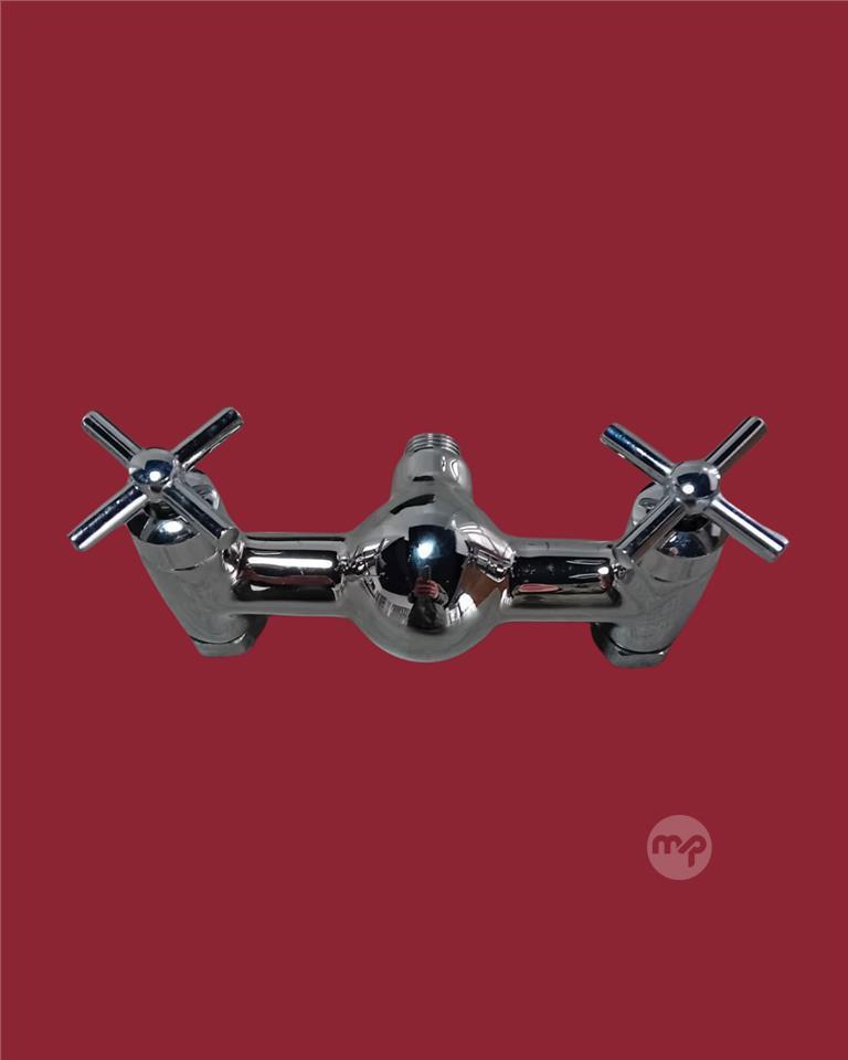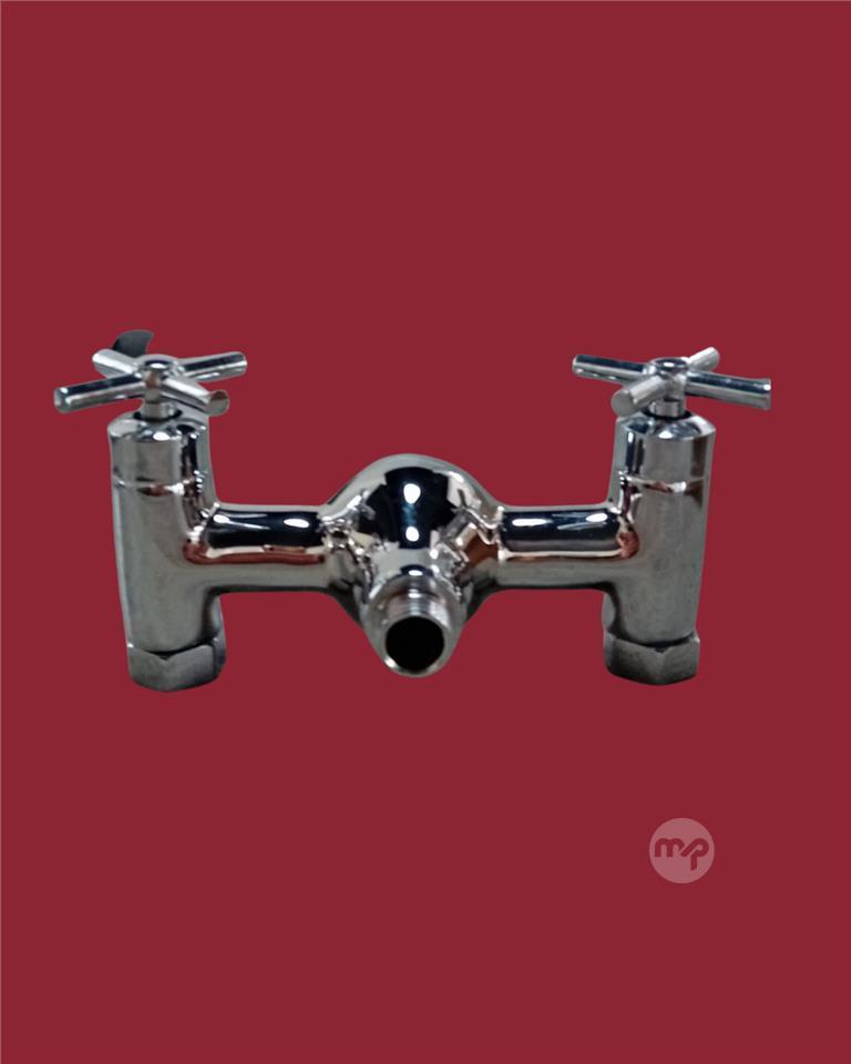 Timeless polished chrome exposed bath and shower mixer with elegant crosshead handles for precise hot/cold control, sturdy bridge design, and downward spout – ideal for traditional or vintage-style bathrooms. High-quality build, smooth operation, and that perfect retro charm.