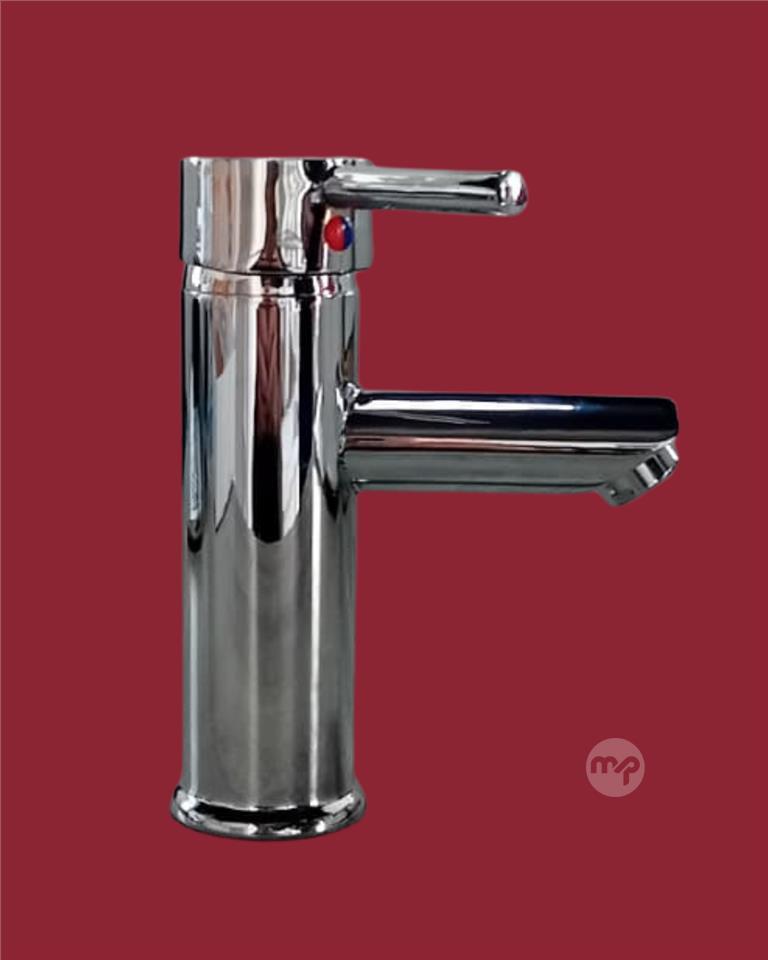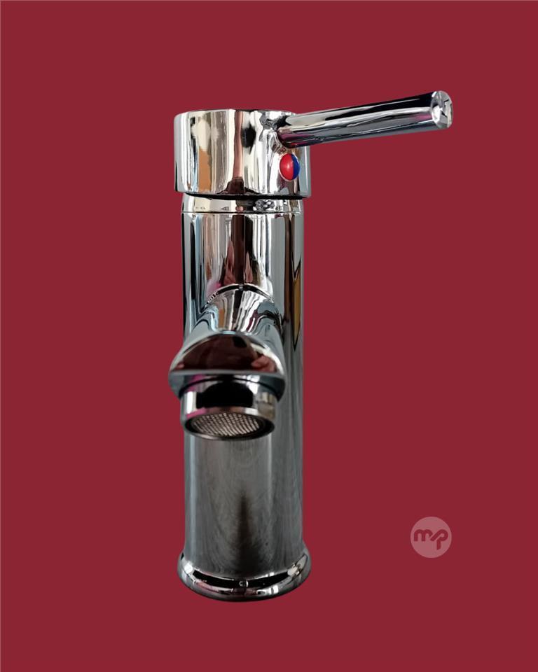 Modern polished chrome monobloc mixer with tall cylindrical body, flat joystick lever handle for effortless single-handed operation, and integrated aerator for a smooth, splash-free flow. Clean minimalist design with durable ceramic disc technology – ideal for contemporary basins, cloakrooms, or stylish bathroom upgrades.