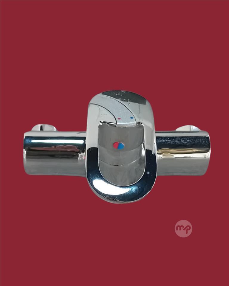 Stylish polished chrome bar shower mixer with distinctive open-loop ergonomic lever handle for effortless single-handed temperature and flow control, sleek curved body, and bottom outlet for handheld shower connection (hose/riser not included). Modern, sculptural design with reliable ceramic disc cartridge – perfect for over-bath showers, wet rooms, or minimalist bathroom renovations.