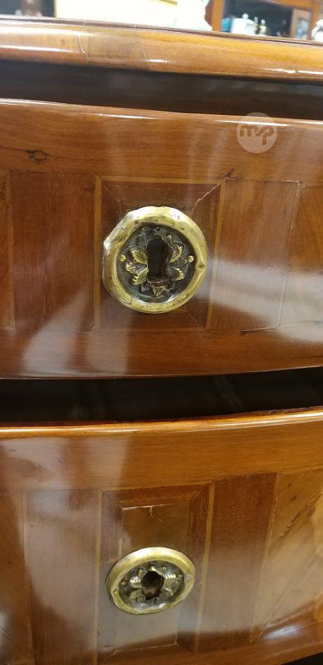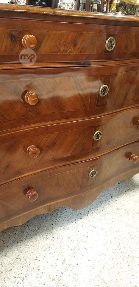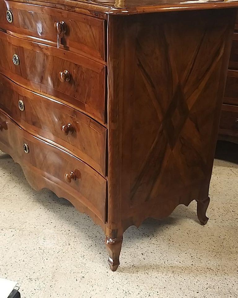 An Antique 19th century Maltese serpentine front inlay olive wood Chest of 4 l