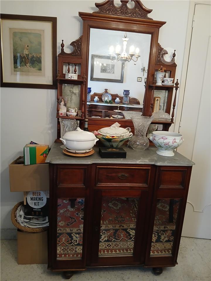 Antique sideboard with grey marble top and mirrors - €110