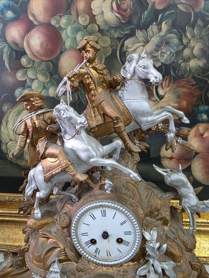 A LARGE Antique 19th Century French gilt and Silvered mantle Clock.