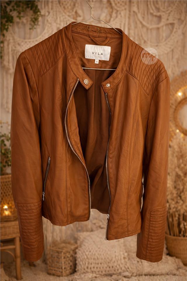 Stylish brown biker jacket from VILA, made of soft faux leather.