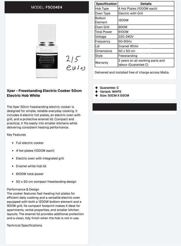 New Xper Freestanding Electric cooker 50cm Electric Hob White more info from pictures if interested send me on Messenger or WhatsApp on 99842654
