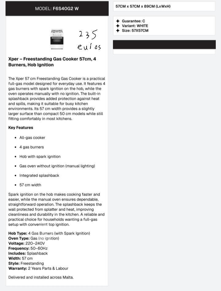Xper Freestanding Gas Cooker 57cm