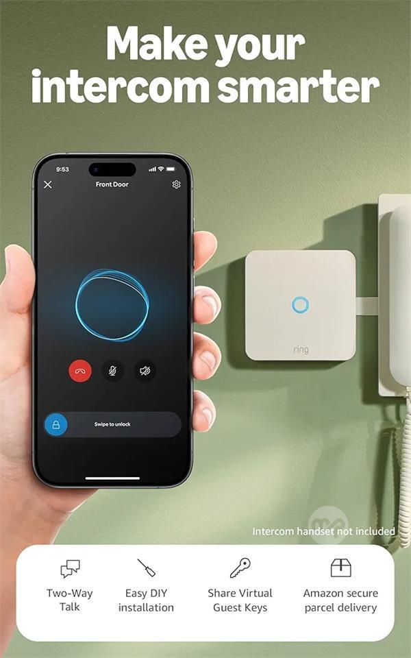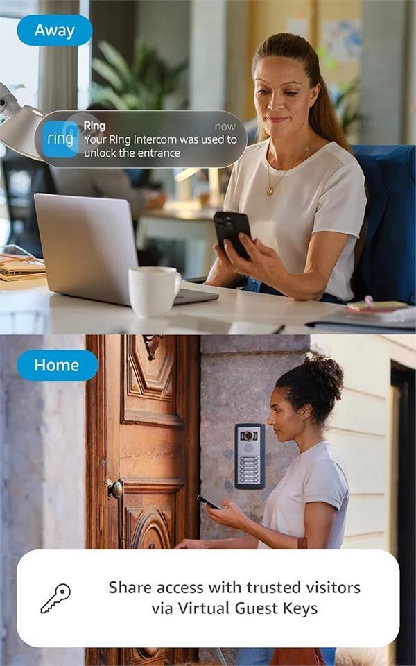 (NEW) GO HANDS-FREE WITH ALEXA: Control Ring Intercom Audio using voice commands with Alexa-enabled devices. Got your hands full? Answer your intercom or unlock your building entrance hands-free.