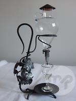 crystal glass ,engraved. and wrought iron stand