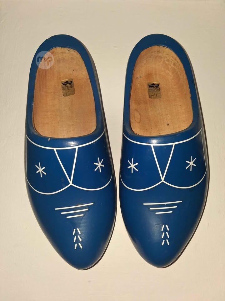 Vintage Dutch Wooden Clogs - Hand-Painted Blue
